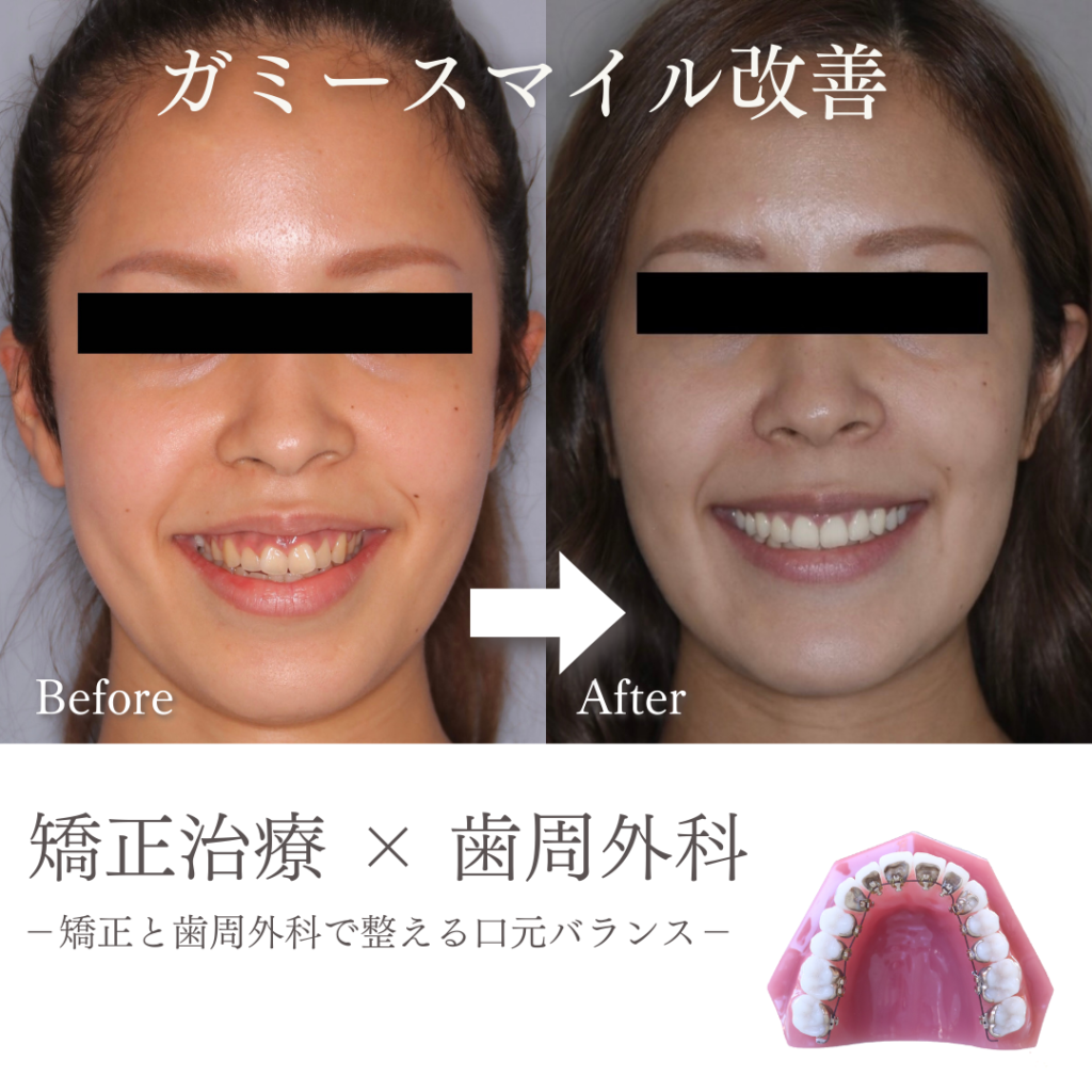 矯正治療と歯周外科で改善するガミースマイル症例 ― 笑ったときの歯ぐきが気になる方へ ―